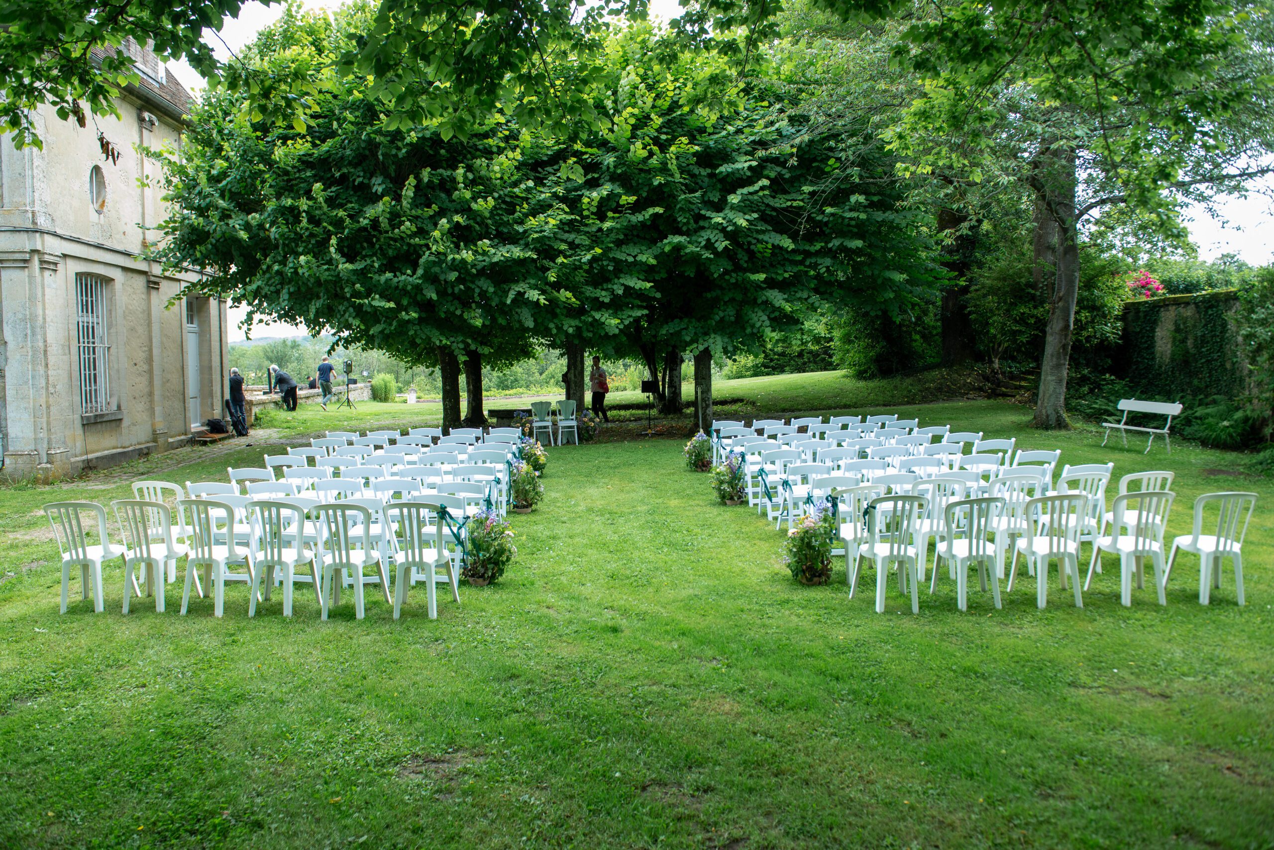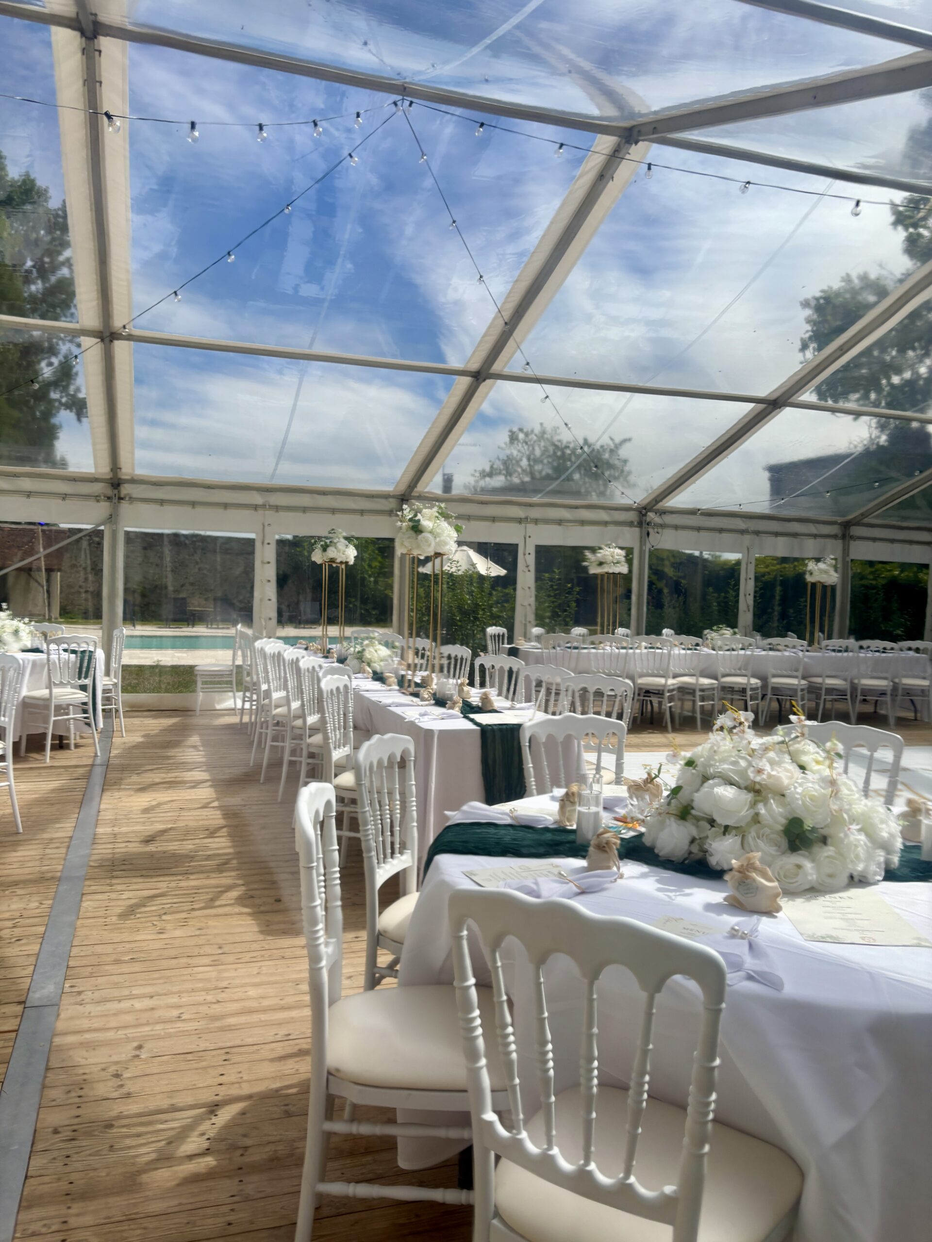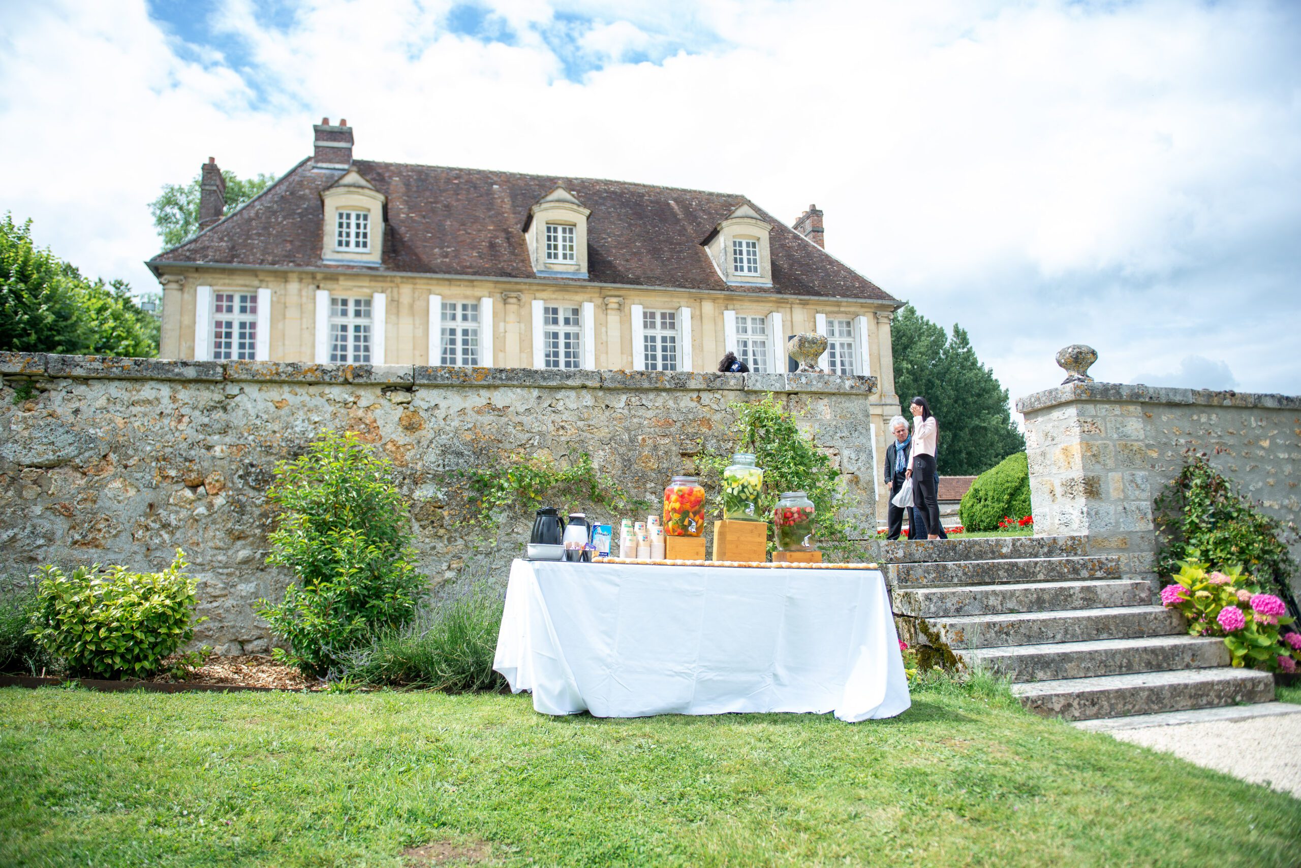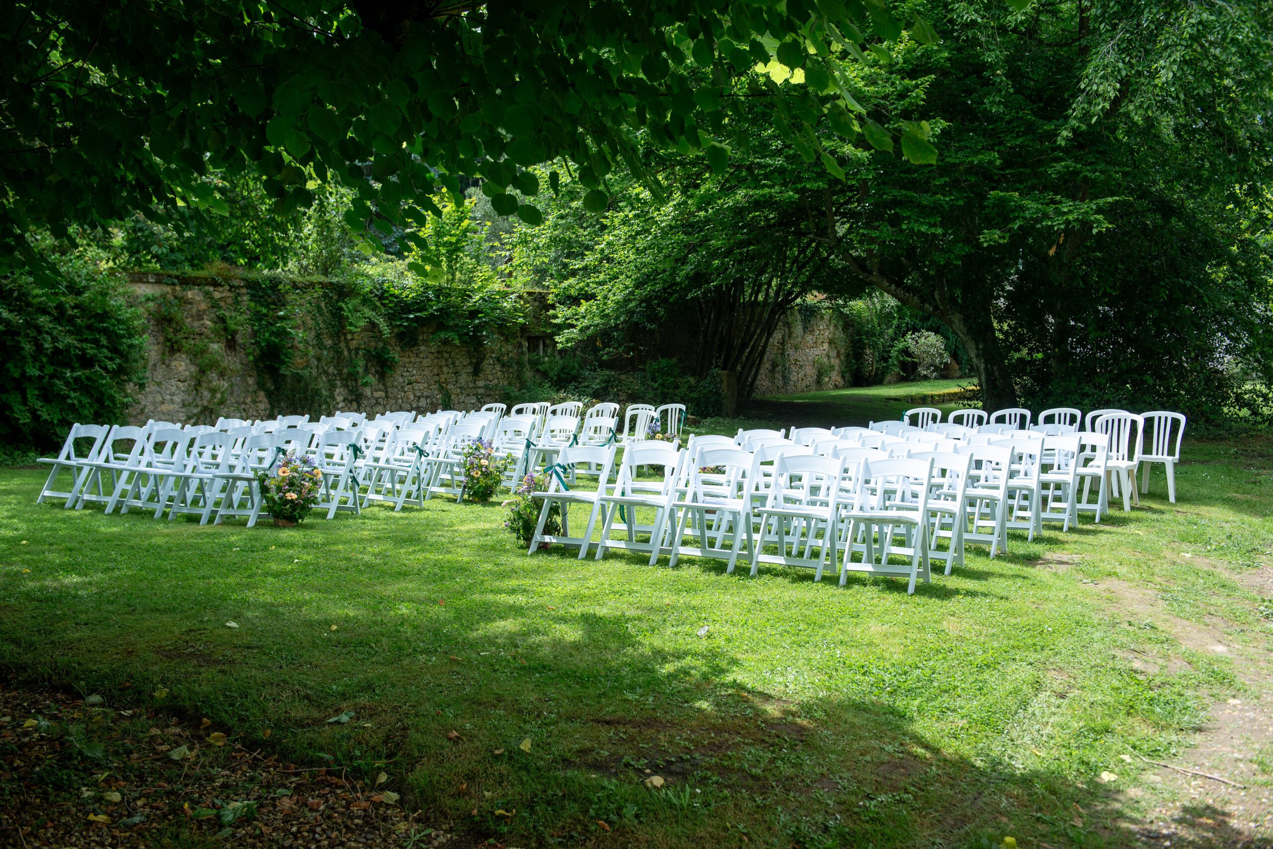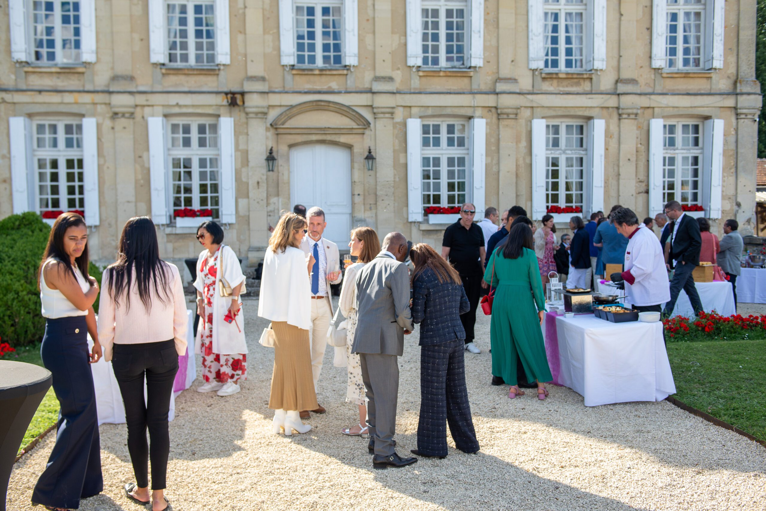 Longues soirées douces, piscine chauffée par le soleil, cocktails sous les marronniers : l’été est la haute saison des mariages et réceptions en extérieur au domaine.